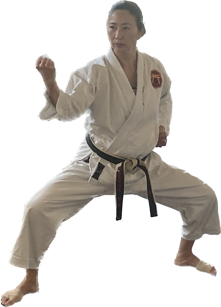 She currently holds the rank of Godan (5th dan) and an active instructor at the Okinawan